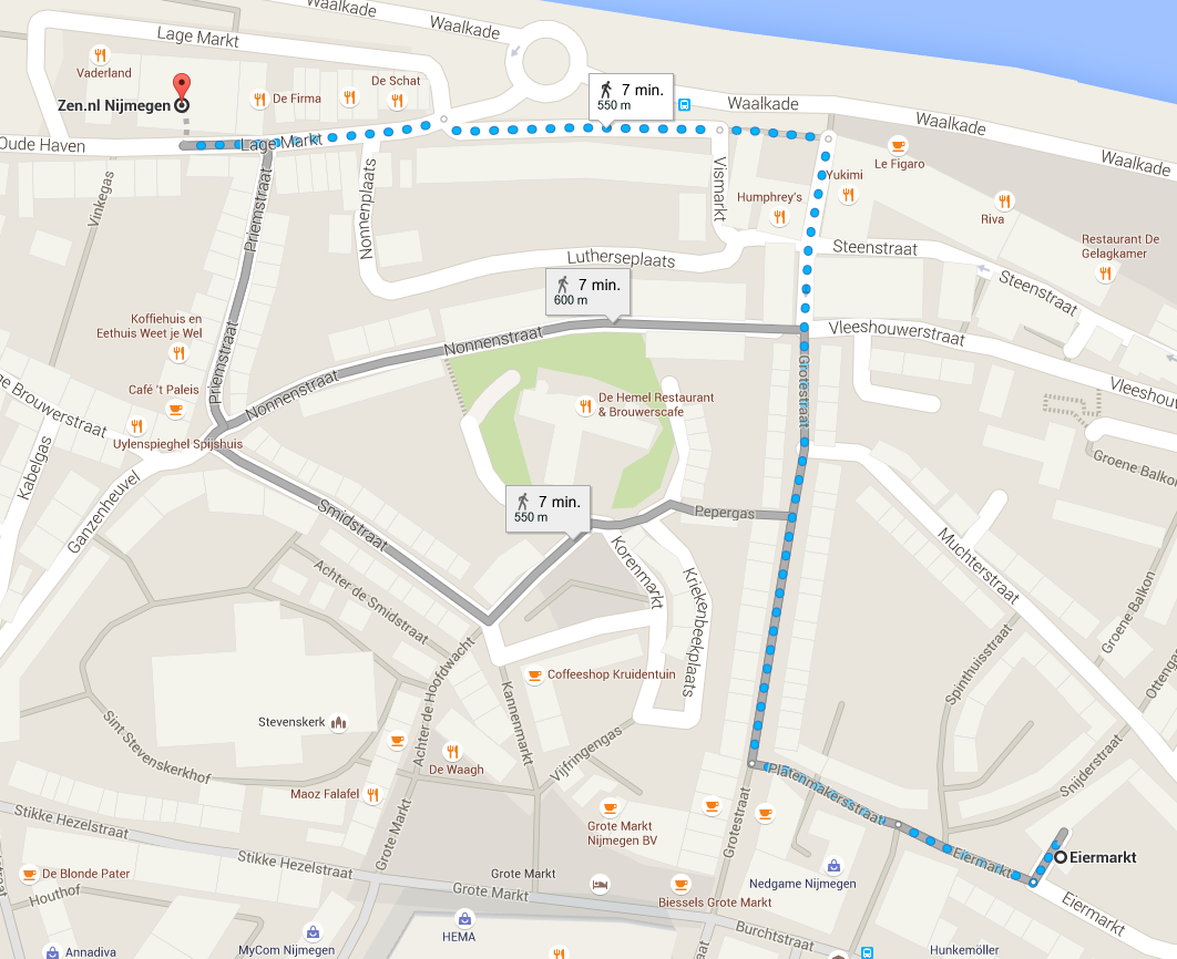 Zie hieronder de looproute van de parkeergarage naar Zen.nl Nijmegen: