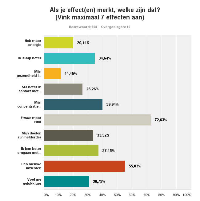 We hebben de introductiecursisten ook gevraagd naar de effecten van het mediteren. Deze zijn als volgt: