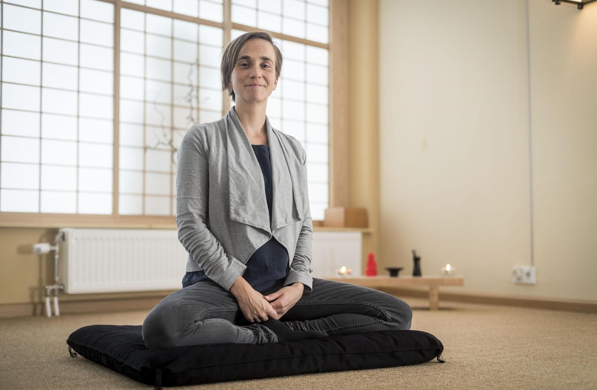 De zendo, de meditatieruimte van Zen.nl aan de Lipperkerkstraat, is een oase van stilte deze vrijdagmiddag. Het geluid...