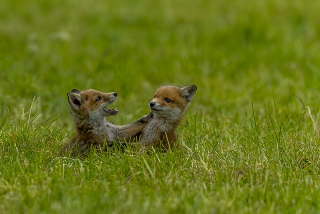 Nr. 71 - Foto gemaakt door Evert Jan Kema - Jonge vosjes spelen al avonden lang in een weiland bij Leusden